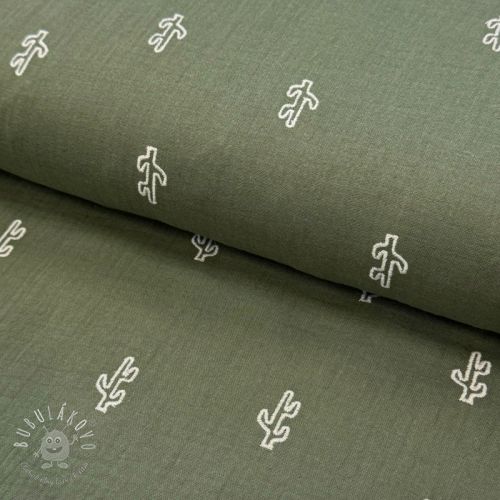 Vzorovaný mušelín metráž: Dvojitá gázovina/mušelín EMBROIDERY Cactus green