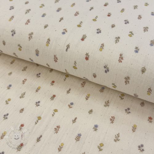 Vzorovaný mušelín metráž: Dvojitá gázovina/mušelín Flowers Mia digital print ORGANIC