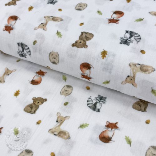Vzorovaný mušelín metráž: Dvojitá gázovina/mušelín Forest animals white digital print