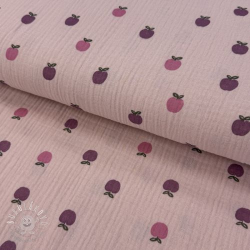 Vzorovaný mušelín metráž: Dvojitá gázovina/mušelín Fruits apple soft rose