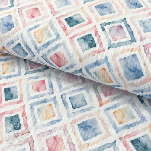 Vzorovaný mušelín metráž: Dvojitá gázovina/mušelín Geo watercolour blue digital print